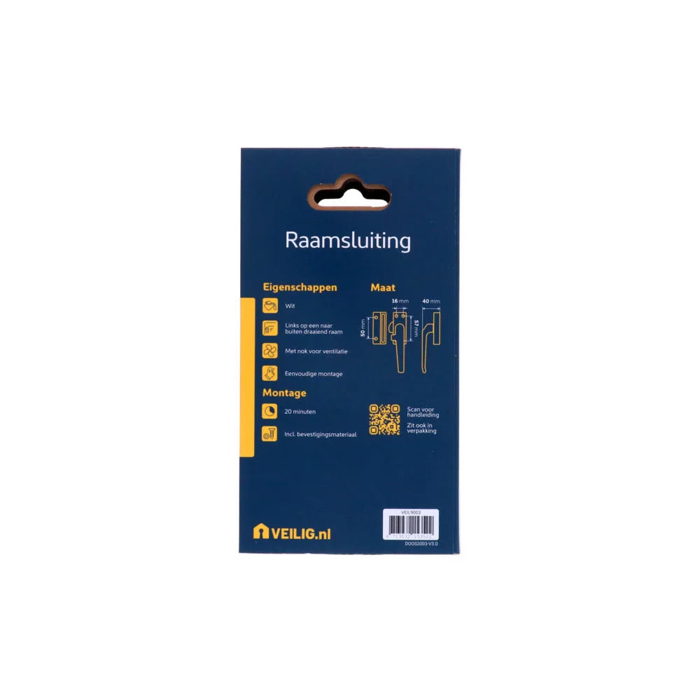 De Veilig standaard raamsluiting is een praktische en veilige keuze voor jouw ramen. Verkrijgbaar in de tijdloze kleuren zilvergrijs, wit...